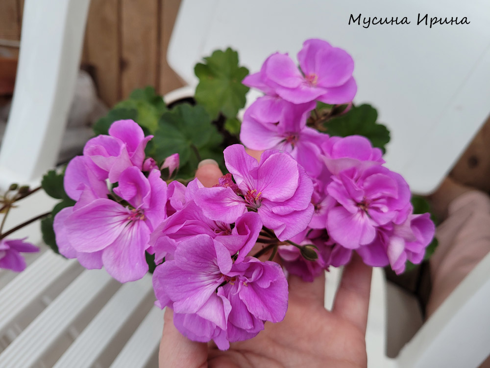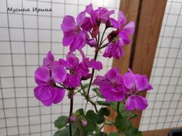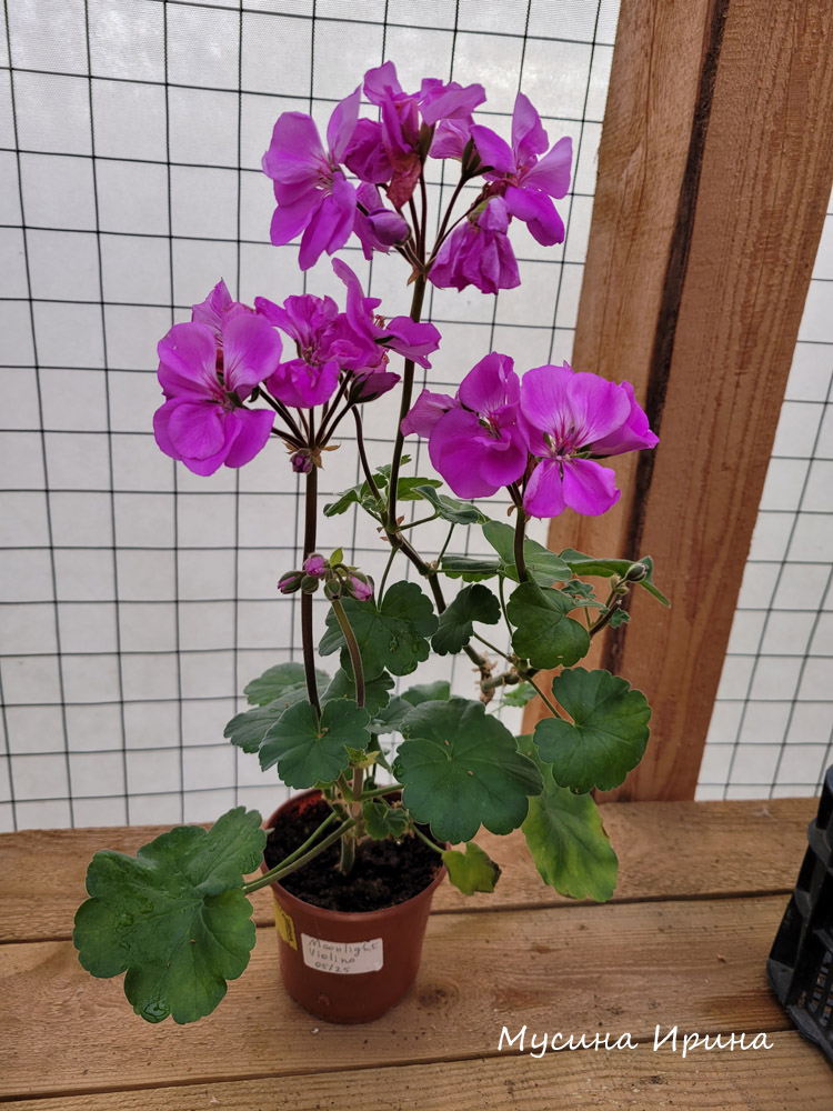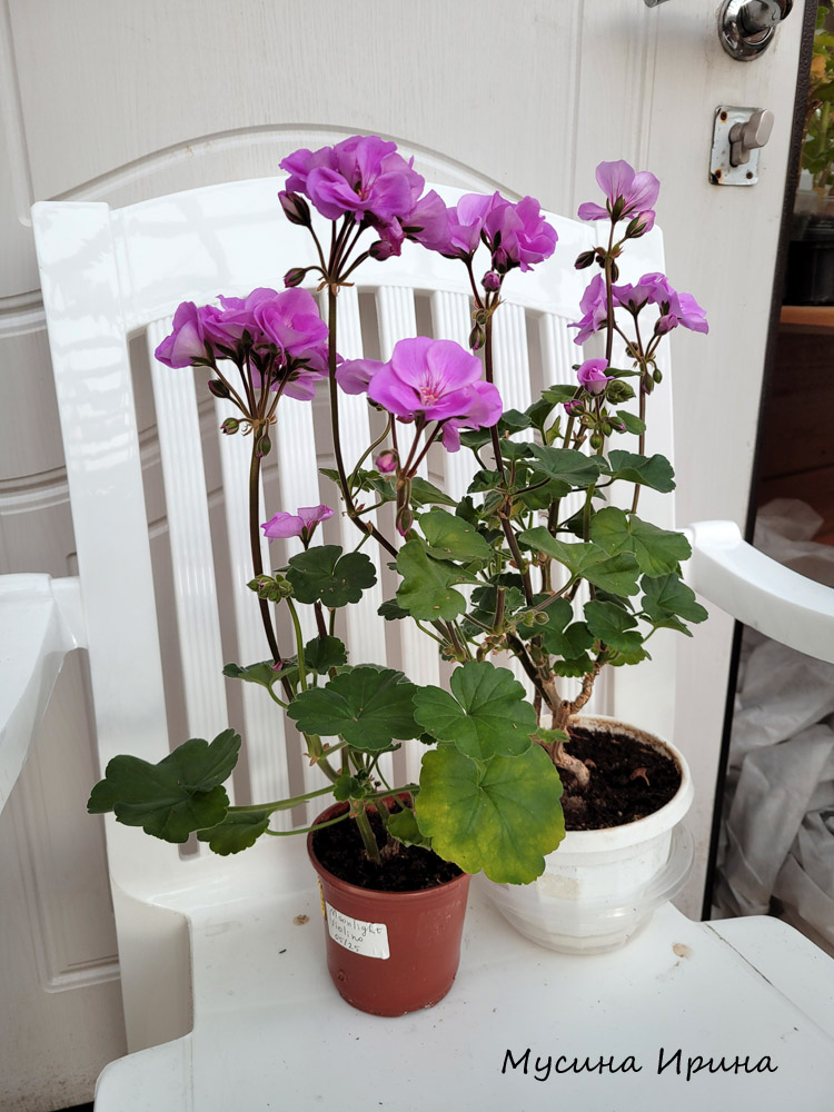 Вы только посмотрите, какой цвет! Очень редкий и насыщенный лиловый оттенок, редко встречающийся у зональных пеларгоний. Кустик у этого сорта изящный, с тонкими веточками, карликовый, листья темно-изумрудные, цветы крупные, полумахровые, насыщенного темно-сиреневого или лилового оттенка, цветёт очень обильно, надо убирать лишние цветоносы, иначе растение истощается. Сорт вообще некоммерческий, я держу исключительно для селекции, черенкую очень редко.