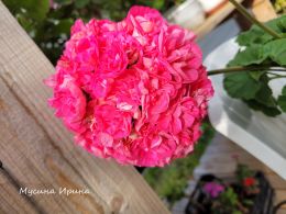 Мощный ветвистый куст, толстые стебли и цветоносы, крупные махровые шапки, соцветия - шары ярко-розового цвета, как Барби. Мама сеянца - Ю Сакура, кстати этот сеянец только цветом на маму похож, а по типажу выглядит как зоналка, в отличии от всех остальных из этого опыления.