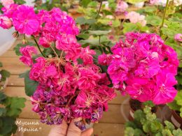 У этого сорта характерные для новой сказочной сортосерии темно-изумрудные плотные пушистые листики, толстые стебли, короткие цветоносы-междоузлия-черешки листьев, карликовый кустик и медленный рост. Цветы довольно крупные махровые для карлика и богатого пурпурного цвета, который никак не поймать на фото, плотные лепестки и что ещё очень понравилось - как он отцветает! Без коричневого цвета, прямо как сухоцвет (на последнем фото). Неприхотливый, чисто-зональный, получен от Таиры Февронии.