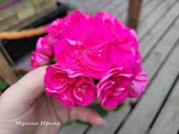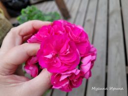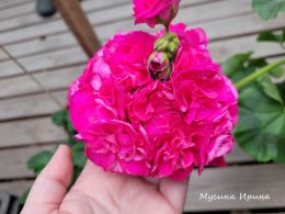 Этот сорт шикарного трудно фотографируемого цвета, если на словах, то это пурпурно-фиолетовый густой цвет, который довольно редко встречается в пеларгониях. Цветы крупные, махровые, многослойные, красивой формы. Куст стандартный, коренастый, ветвистый с крепкими недлинными цветоносами, неприхотливый, чистокровная зоналка. На фото семенное не формированное растение 1,5 года в горшке 2 литра. Больше подробностей и фото цветения черенков будет летом
