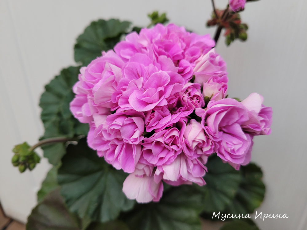 Это сеянец от Шёлк Венеции (кстати от неё очень много качественных сеянцев выросло). Цветы сиреневые, среднего размера, махровые, короткие темные цветоносы, плотные темно-изумрудные листики на коротких черешках и карликовый плотный кустик с толстыми стеблями. Неприхотливая чистая зоналка. Пока маловато фотографий, но скоро весна и мы это исправим:)