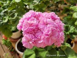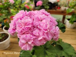 Шёлк Тридевятое Царство занял особенное место у меня и стал первым сортом, открывающим новую сказочную сортосерию карликов с изумрудными листьями, крепкими коренастыми кустиками и махровыми цветами разных расцветок. Этот мохнатый крепыш с сиренево-розовыми махровыми цветами красивой формы, с довольно крупными соцветиями для зонального карлика. Листья бархатные изумрудные, короткие цветоносы, ветвистый и неприхотливый. Недостаток только один - маленький коэффициент размножения. Чисто-зональный сорт, получен от сорта Шёлк Небеса.