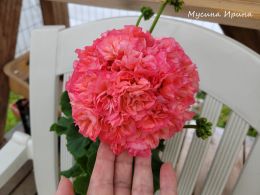 Наверное это самый роскошный сеянец в посеве, он является просто квинтэссенцией самого удачного посева за всю мою селекционную работу :) У него крупные махровые цветы кораллово-лососевого цвета с переливами, короткие цветоносы и черешки листьев, компактный коренастый неприхотливый куст. Это из селекционной линии от боукери.